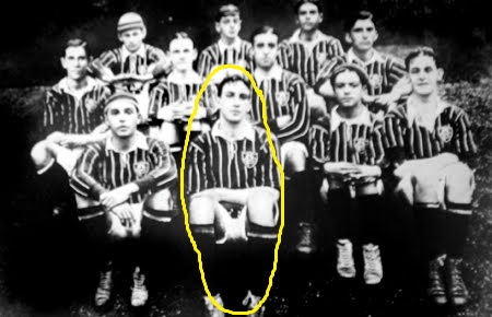 Abaio Edward calvert (ao centro)com o time do Fluminense em 1912.